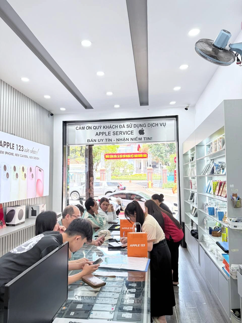 Apple 123 Pleiku tấp nập anh chị em ghé thay pin + bảo dưỡng máy — kỹ thuật shop em làm trực tiếp tại 123 Trần Phú, không gửi đi nơi khác.