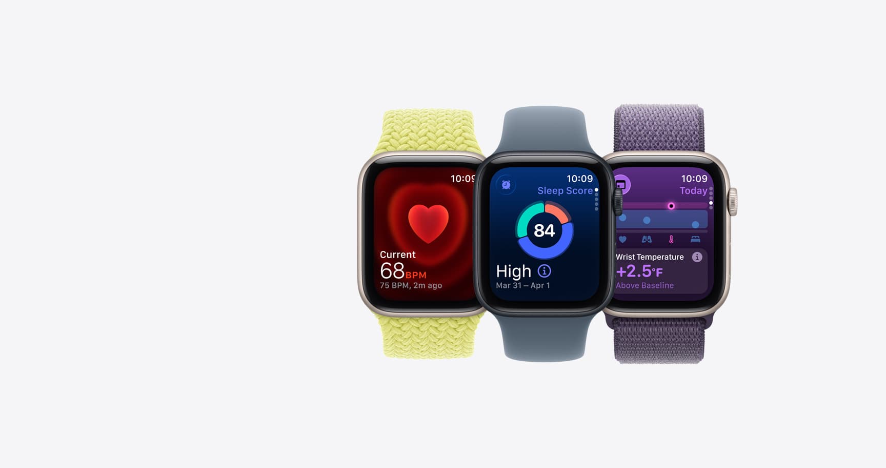 3 màu nhôm — Midnight, Starlight, Silver. Dây Sport Band hoặc Sport Loop tuỳ chọn.